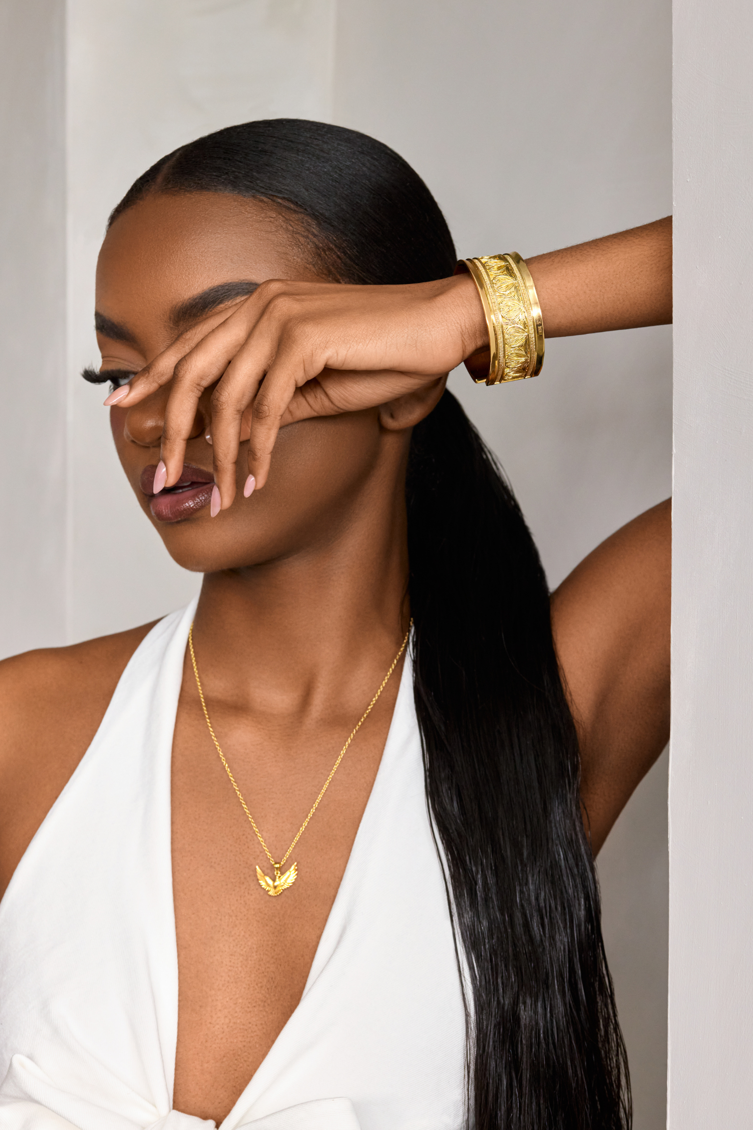 From the raised fist of Mukaji to the soaring wings of Soar, each design is sculpted with precision, finished by hand, and hallmarked with authenticity. We work only with noble materials — 18k gold, vermeil, and ethically sourced stones — ensuring that every piece is as enduring as the legacy it represents.