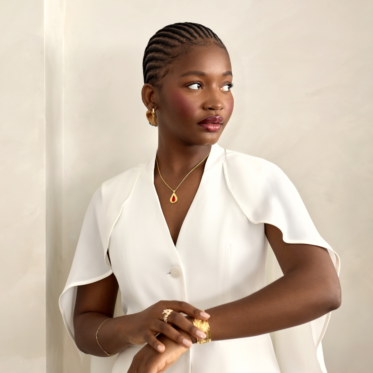 Whether in the boardroom, at brunch, or during a quiet morning routine, she wears DORAMS as a second skin—a signature of strength and subtle sophistication.